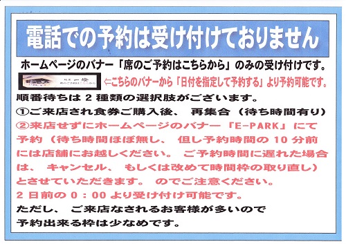 仕組みとしましては、従来のE-PARKを使ってのご案内ですが、ホームページに近日中にバナーを貼り、そこをクリックいただくことでお店の予約画面に移ります。