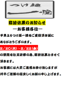 つけ麺一燈、臨時休業のお知らせ