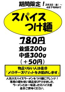 海老味噌つけ麺は1月で終了とさせて頂きます。