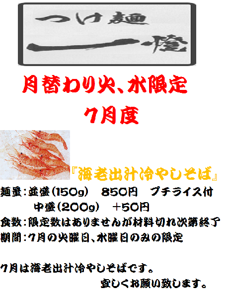 つけ麺一燈より月替わり限定のお知らせ