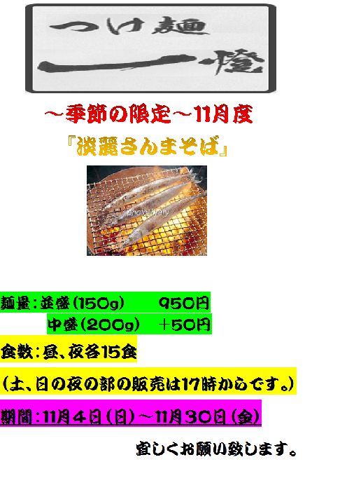 つけ麺一燈より11月度の限定のお知らせ