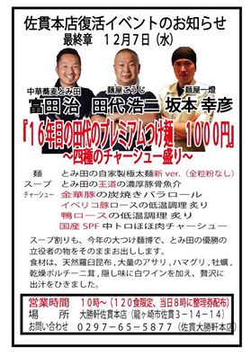 この度12/7(水)佐貫大勝軒にてイベントを行います。
