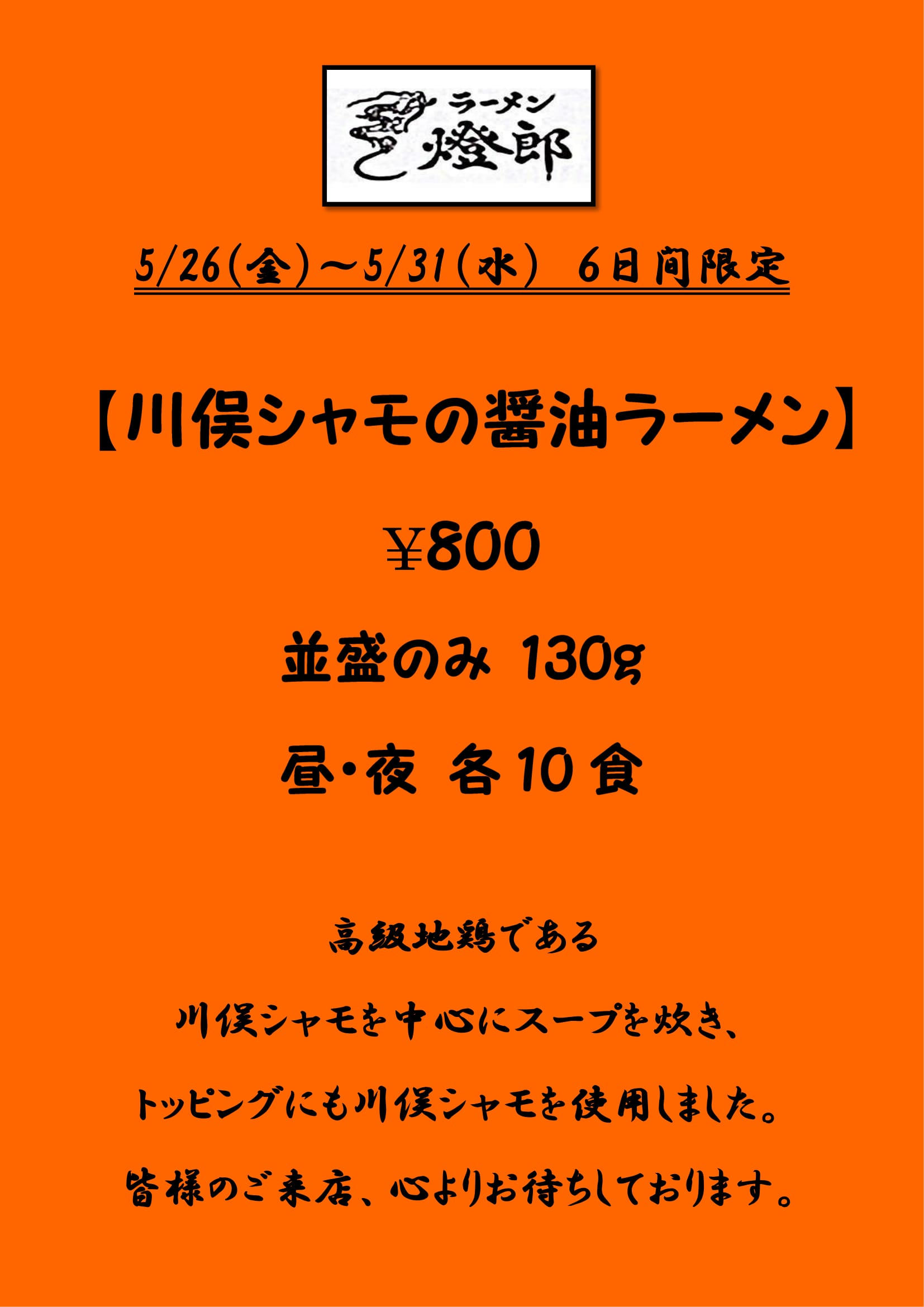 ラーメン燈郎より限定のお知らせ