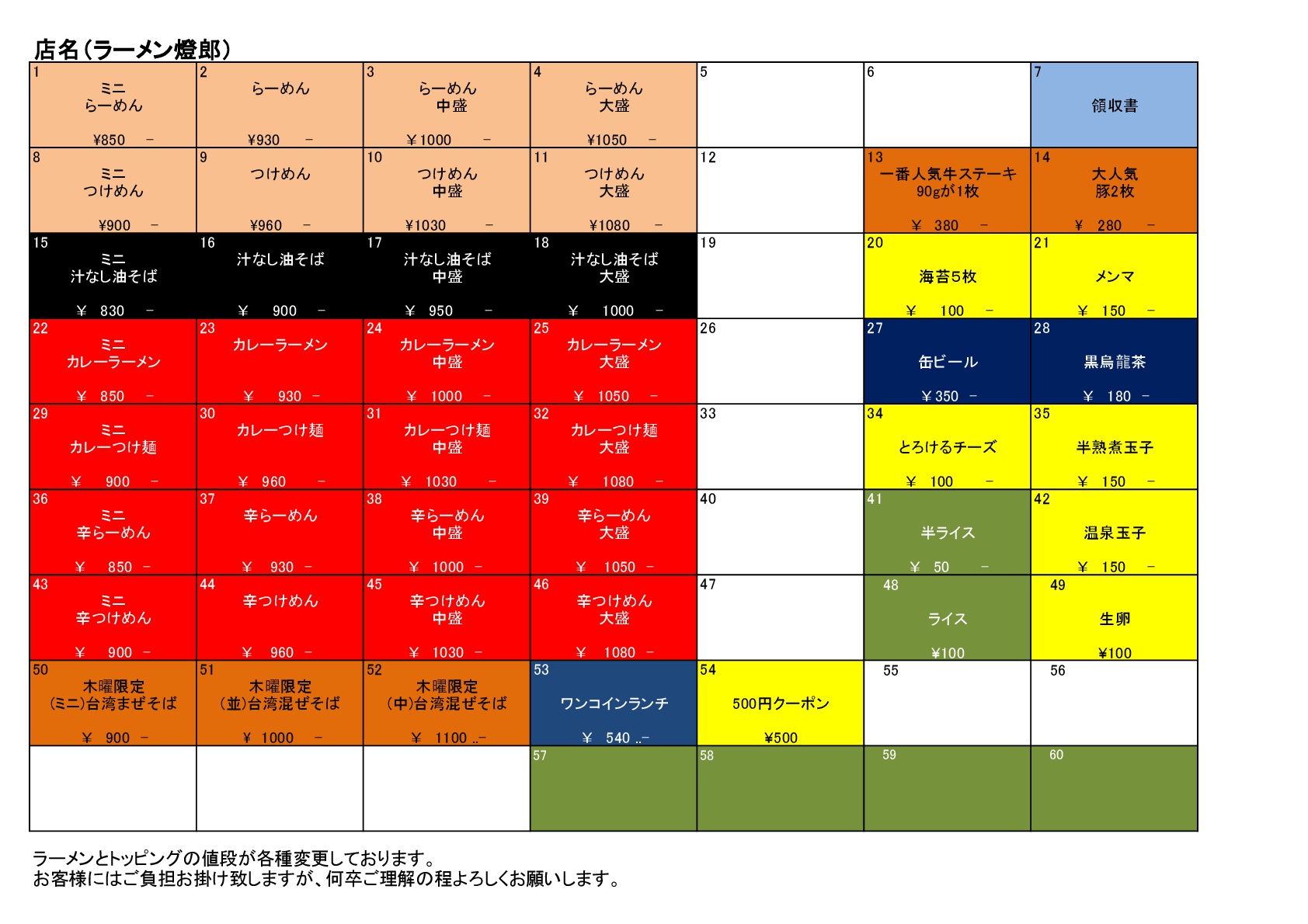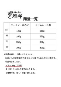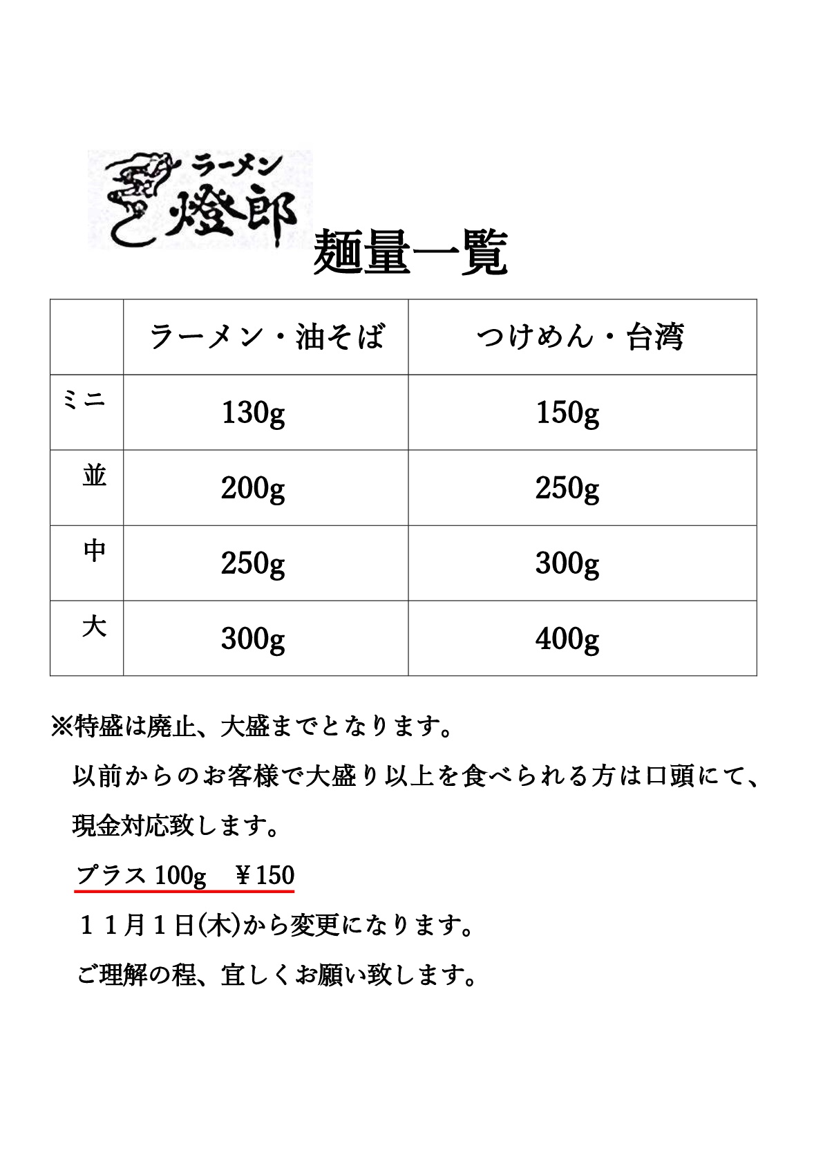 ラーメン燈郎価格と麺量の改定のお知らせ