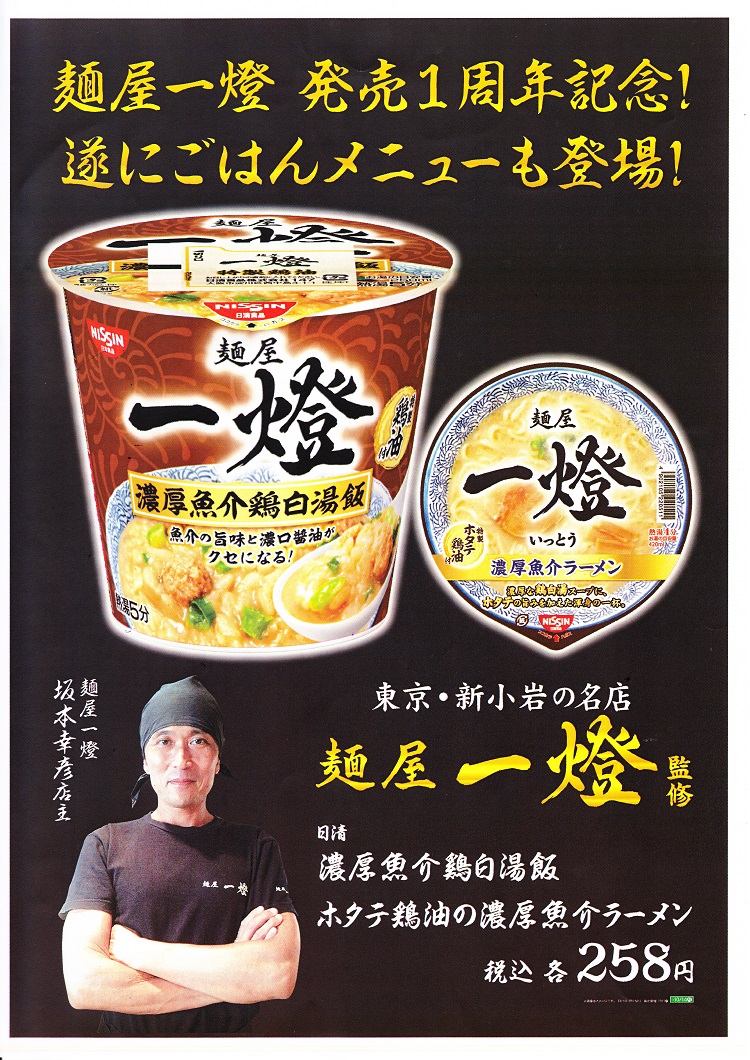 ローソン様より新商品の発売のお知らせです。 2019.10.02 10月1日より全国のローソン様にて日清食品より 「濃厚魚介鶏白湯飯」が発売となりました。 お店のつけ汁にライスを入れたリゾット風と比べると、あっさりしていますがこちらのみ食して満足ではなく、他とのバランスを考えての味づくりとのことです。 どうぞご賞味くださいますようお願い申し上げます。