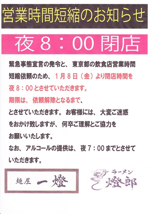 営業時間短縮のお知らせ