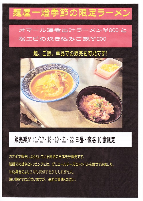 今回は、オマール海老出汁ラーメンと桜エビの炊き込みご飯になります。