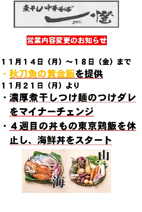 煮干し中華そば一燈からお知らせ