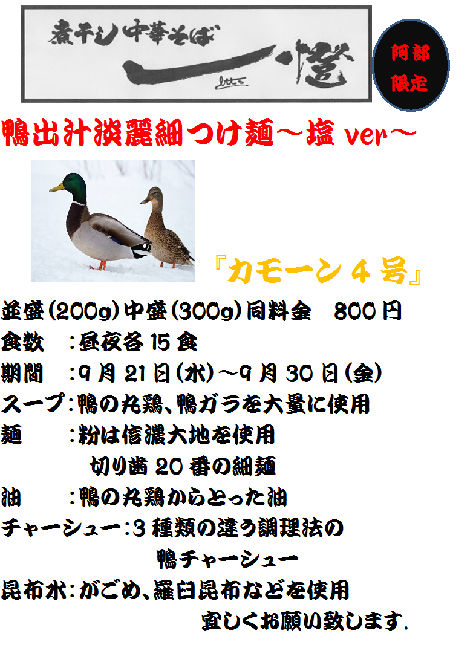 煮干し中華そば一燈限定のお知らせ