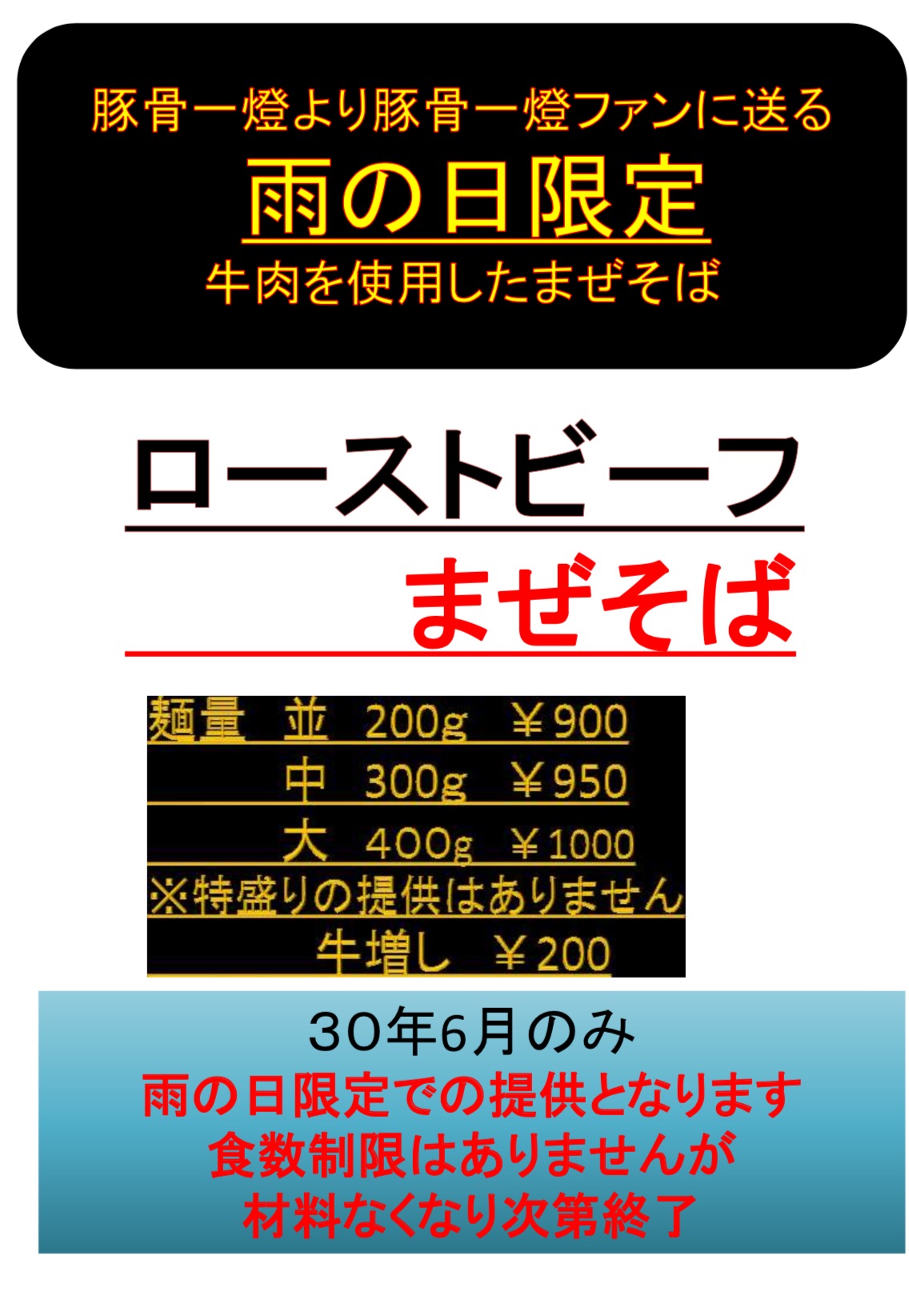 豚骨一燈小岩よりお知らせ