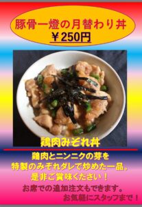 豚骨一燈小岩 月替りご飯のお知らせ