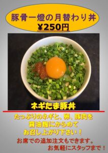 豚骨一燈小岩 月替わりご飯のお知らせ