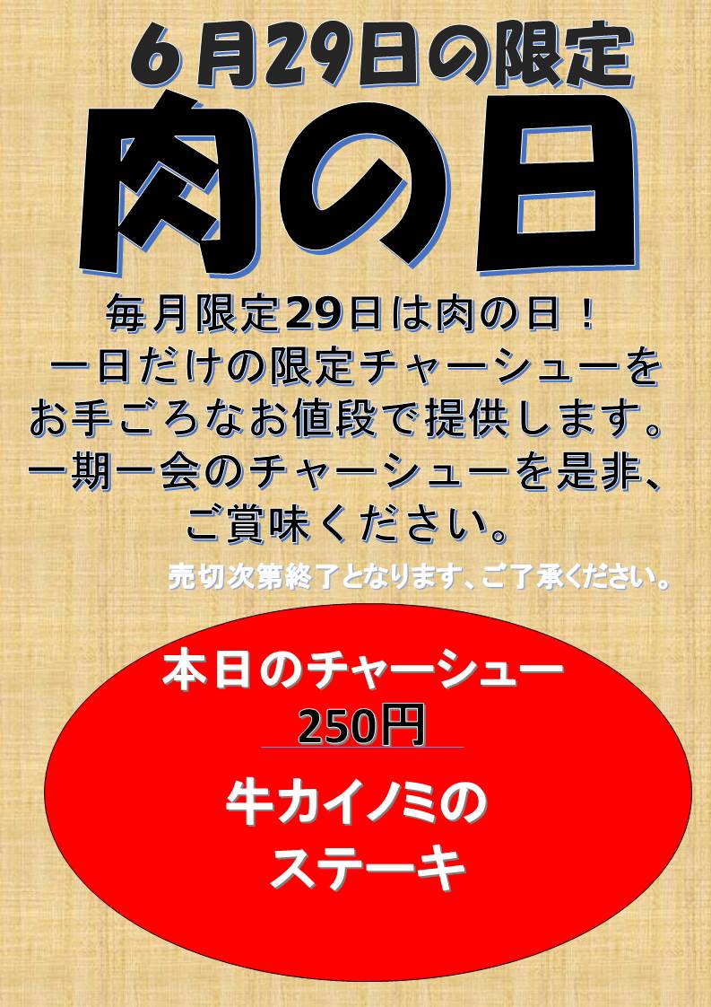豚骨一燈 小岩 肉の日のお知らせ
