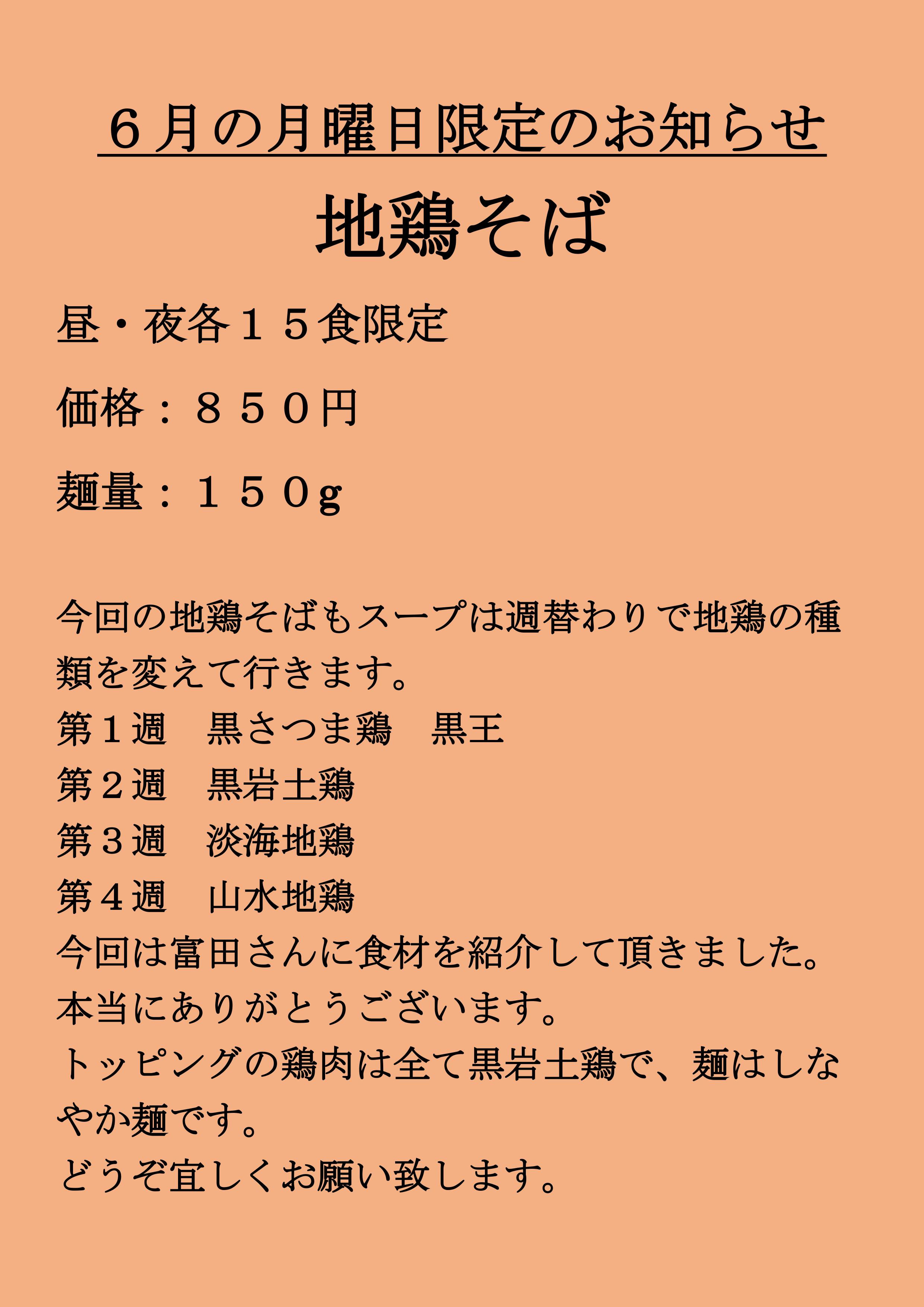 麺屋一燈より6月の月曜日限定のお知らせです。