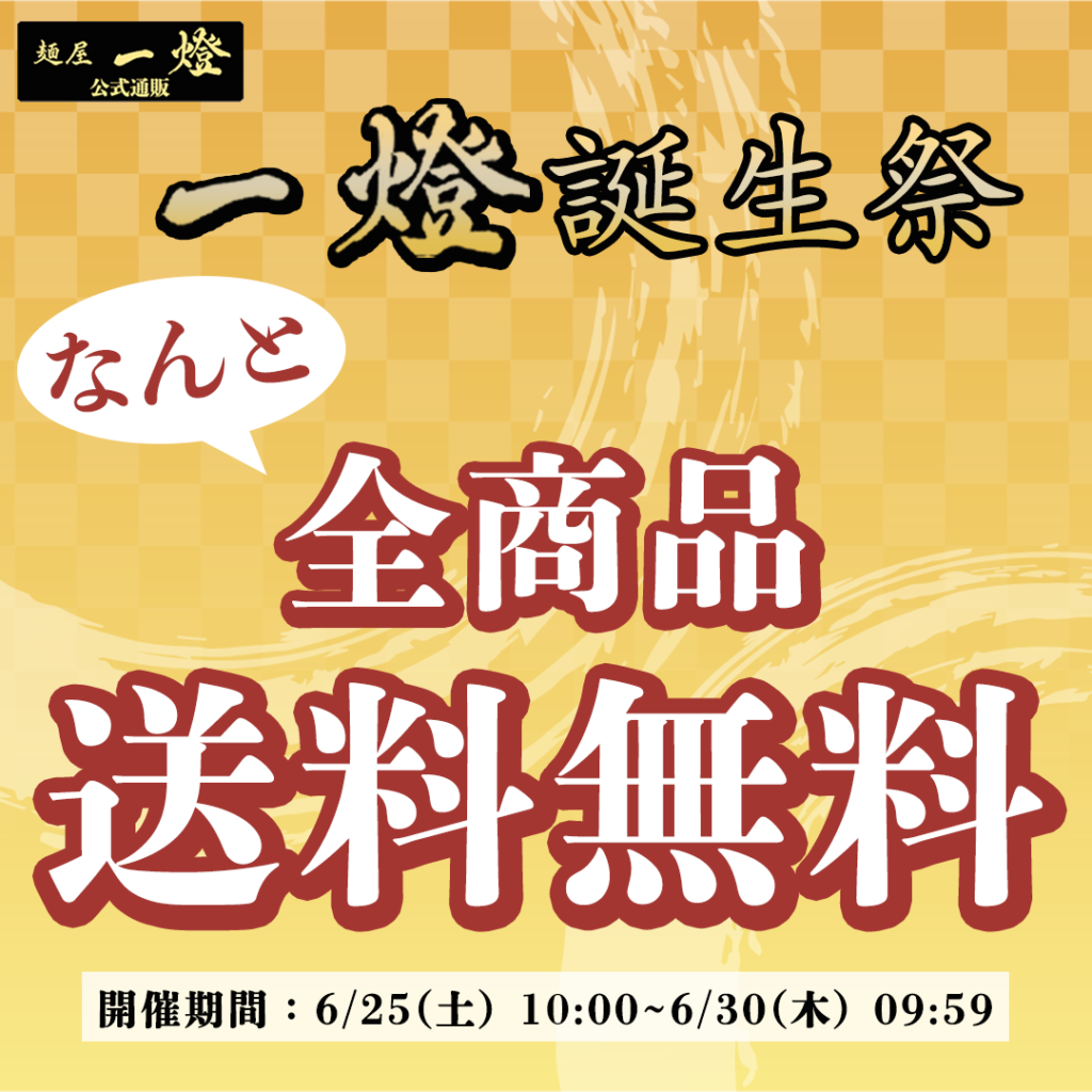 いつも大変お世話になっております。6月は麵屋一燈の創業月になります。明日より誕生祭として送料無料キャンペーンを行います。この機会に是非新商品の餃子もお試しください。よろしくお願いいたします。