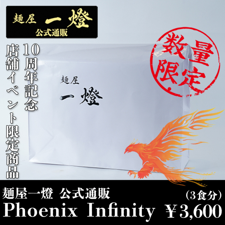 お世話になっております。7/4(月)10:00より公式通販にて先日の周年記念phoenixinfinityを少ない数量ですが販売させていただきます。中身は麺とスープのみで価格は3食セットで(…