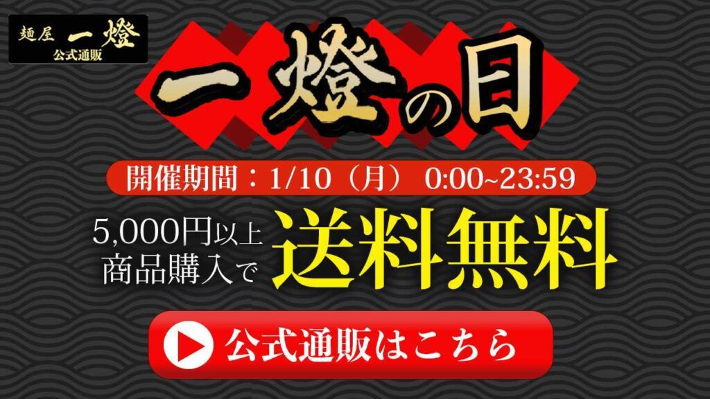 お世話になっております。公式通販1月一燈の日のお知らせです。1月10日(月)0:00から23:59までに¥5,000以上商品ご購入で送料無料キャンペーンを行います。この機会に是非お求めくださ…
