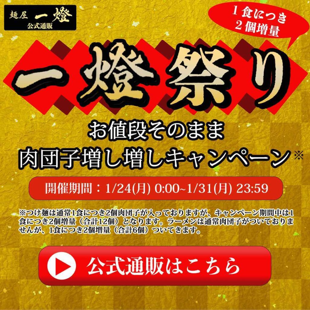 いつもご利用ありがとうございます。公式通販サイトでのキャンペーンのお知らせです。期間:1/24(月)0:00~1/31(月)23:59まで内容:つけ麺は通常1食につき2個団子が入っておりますが、…