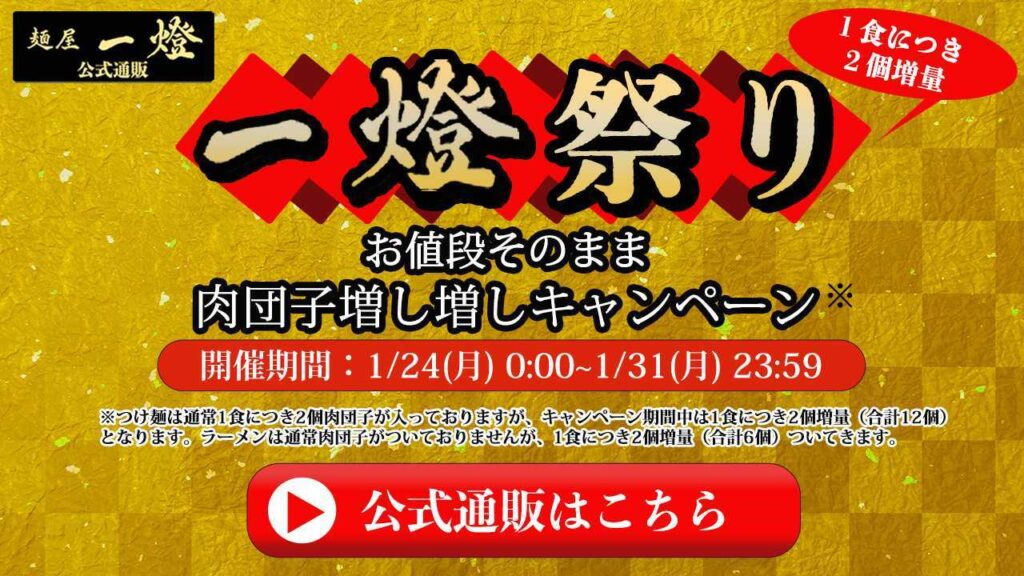 公式通販の肉団子増し増しキャンペーンが明日までとなっております。この機会に是非、増し増しにしてお腹満腹に満たしてください。https://menya-itto-officialec.com/